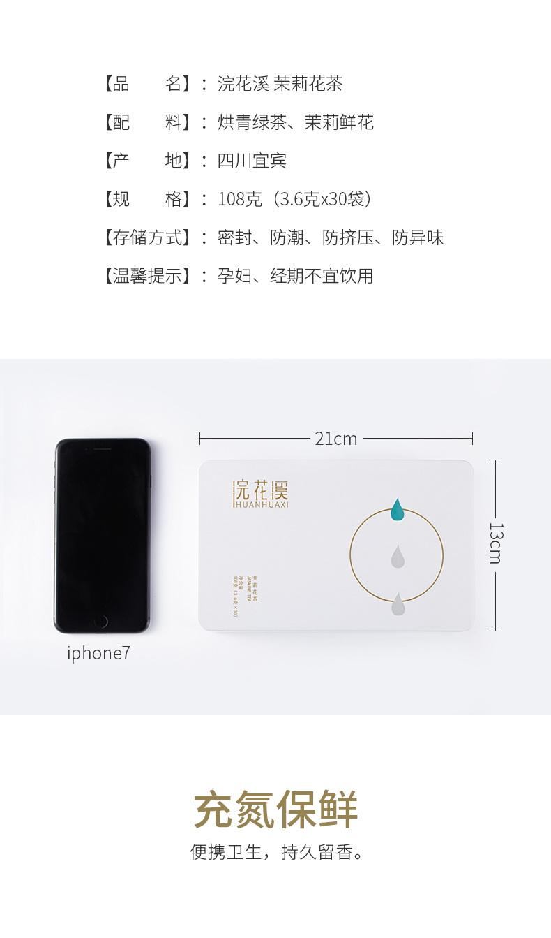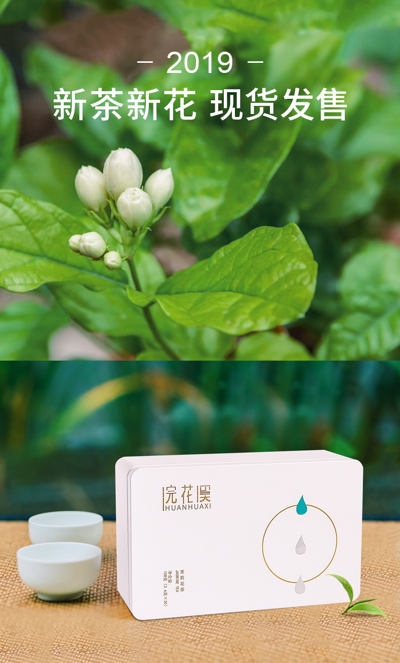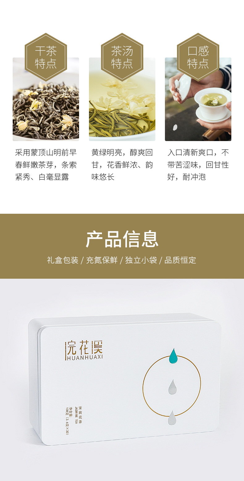 茉莉花茶小包装2019新茶浓香型特级四川茶叶飘雪送礼佳品绿茶盒装麓水108g