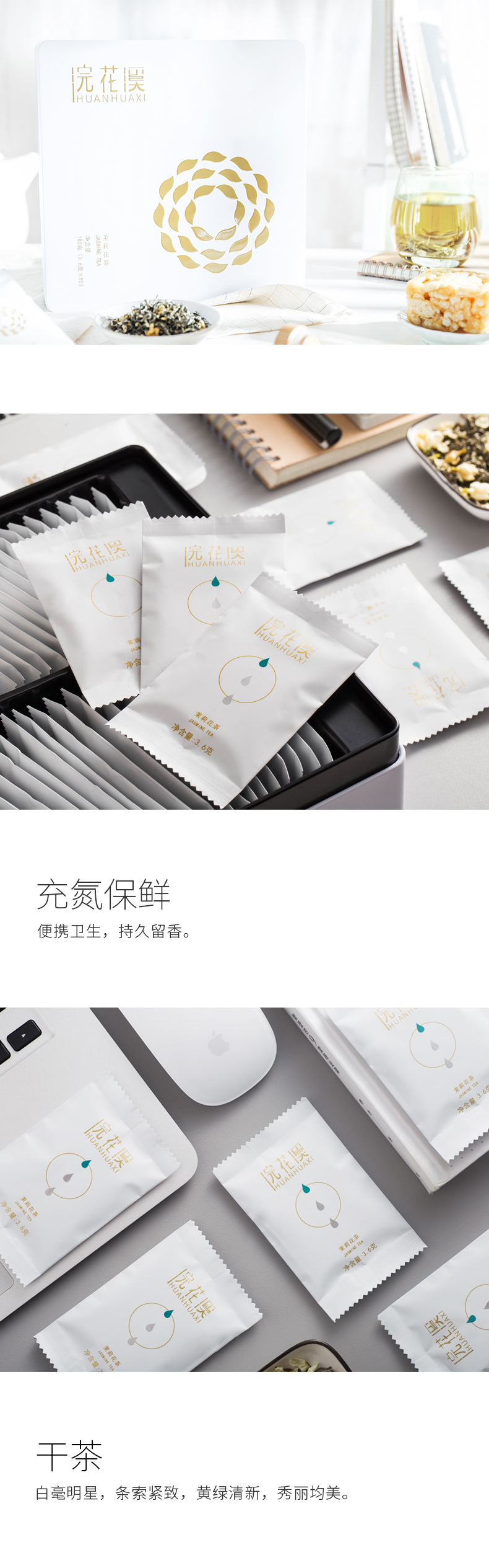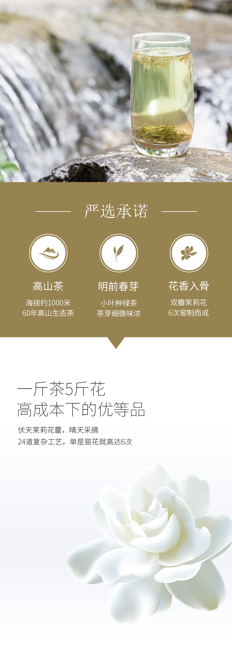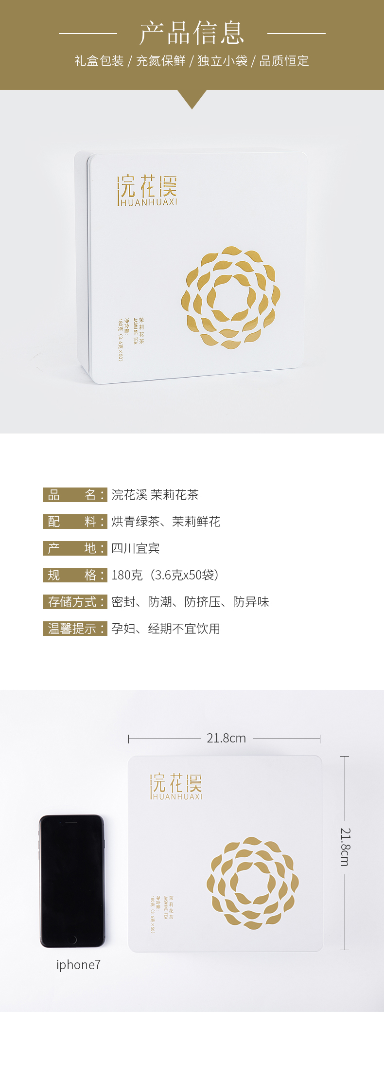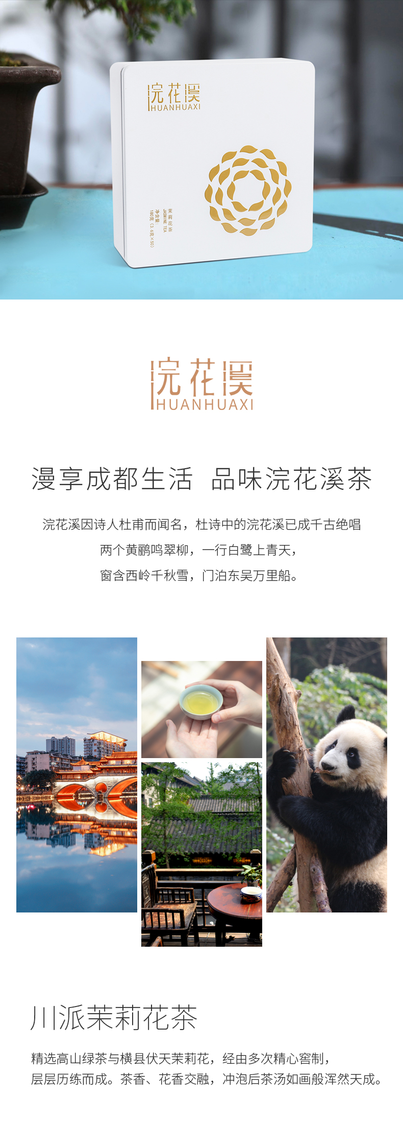 浣花溪特级伏天飘雪茉莉花茶浓香型独立小包袋礼盒装送礼佳品180g麓花